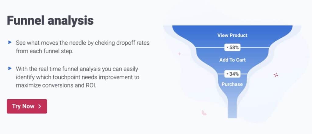 - Funnel: View Product -> Add to Cart (-58%), Add to Cart -> Purchase (-34%) – clearly shows where the drop-off is heavier, guiding further action (in this case, a big drop at view to cart, so maybe the product page needs improvement or the ad targeting could be refined).