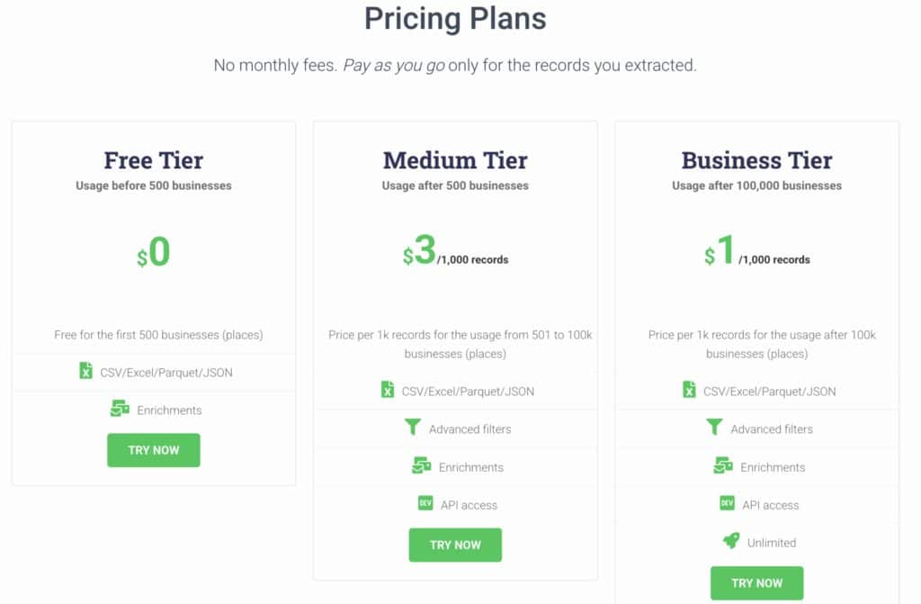 Outscraper uses pay-as-you-go pricing, which is perfect if you’re watching your budget or don’t scrape data every day. You pay only for what you use—no monthly surprises or sneaky fees.